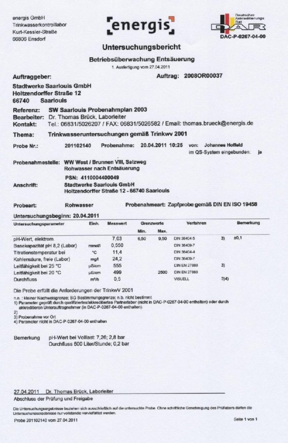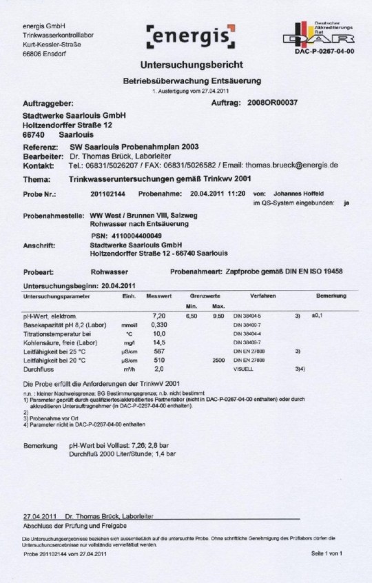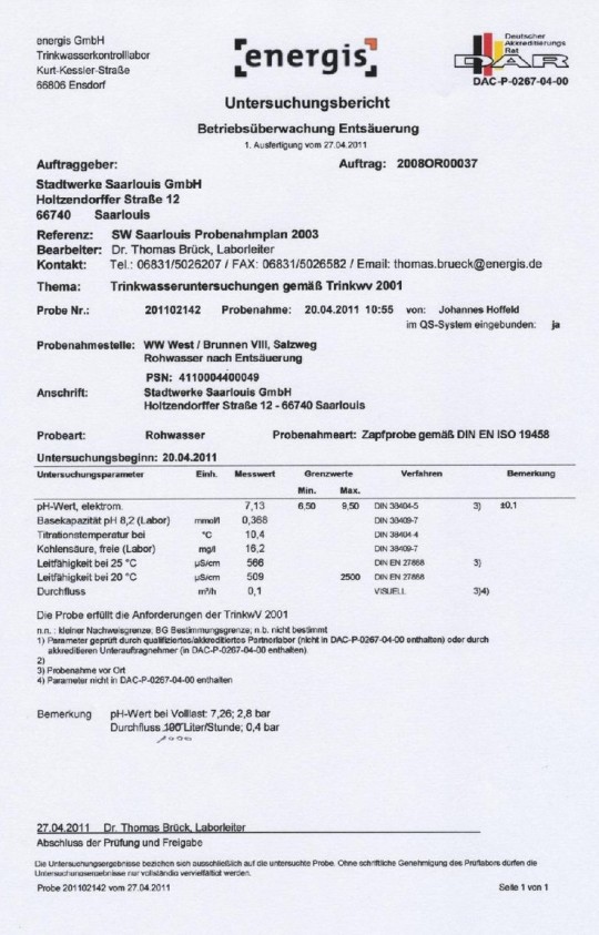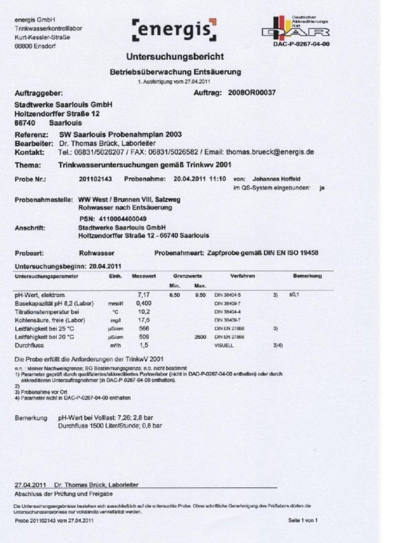 Stadtwerke Saarlouis -Reduzierung der Kohlensäure mittels WST Düse