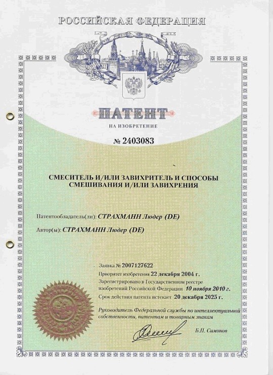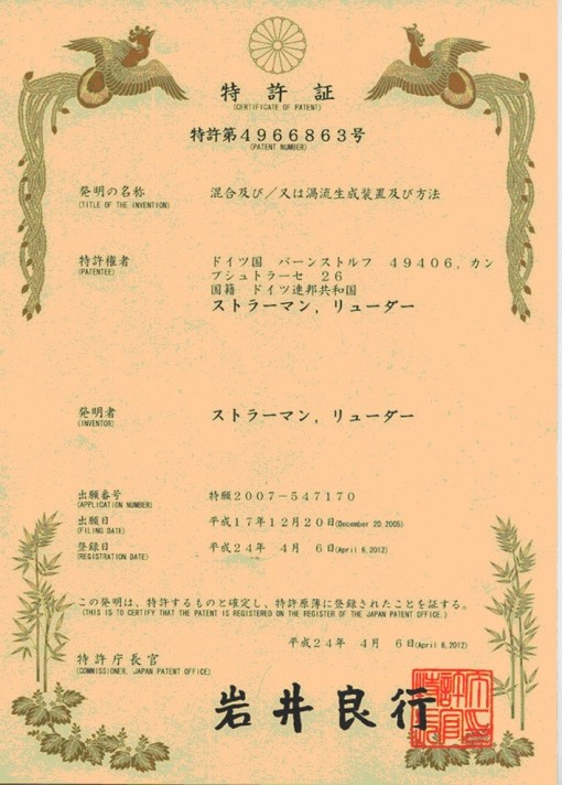 Die Wirbel Symmetrie Technologien Düsen sind bei folgenden Patentämtern patentiert: