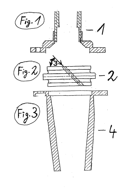 [0005] Nachdem Flüssigkeiten u./o. Flüssigkeits-Feststoff-Gemische u./o. Dämpfe u./o. Gase aus einer Durchströmplatte herausströmen, treffen sie auf einen Misch- u./o. Verwirbelungs-unterstützer, ein weiteres Steuerungselement der Vermischung u./o. Verwirbelung. Misch- u./o. Verwirbelungsunterstützer können z.B. konische oder hyperbolische Trichter sein. Verwendet man z.B. derartige Trichter, bilden Flüssigkeiten wie Wasser durch Durchströmplatten vorbereitete intensive Wirbel aus. Eine Flüssigkeit wie Wasser verlässt den Trichter dann in sich spiralförmig strömend bzw. wirbelnd und formt außerhalb der Misch- u./o. Verwirbelungs-vorrichtung eine in sich spiralförmig strömend bzw. wirbelnde Flüssigkeitsglocke. Die Größe und Wirbelintensität (intensiv rechtswirbelnd oder intensiv linkswirbelnd) dieser entstehenden Glocke spielen erfahrungsgemäß eine Rolle für entstehende Qualitätsverbesserungen erzeugter Flüssigkeiten. Damit z.B. eine große und intensiv wirbelnde Wasserglocke an einem gewöhnlichen Haushaltswasseranschluss mit normaler Wasserausflussmenge entstehen kann, muss der Trichter bestmöglich mit jeweiligen Durchströmplatten korrespondieren. Es sind ebenso Misch- u./o. Verwirbelungsunterstützer einsetzbar, die innerhalb geschlossener Leitungssysteminfrastrukturen funktionsfähig sind. Es sind unterschiedliche Misch- u./o. Verwirbelungsunterstützersysteme u. –verfahren funktionsfähig, je nach verwendeten Durchströmplatten und je nach Flüssigkeiten u./o. Flüssigkeits-Feststoff-Gemischen u./o.