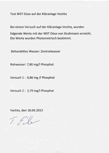 Kläranlage Vechta - WST Düse und die Reduzierung der Phosphatkonzentration- 18.4.2013